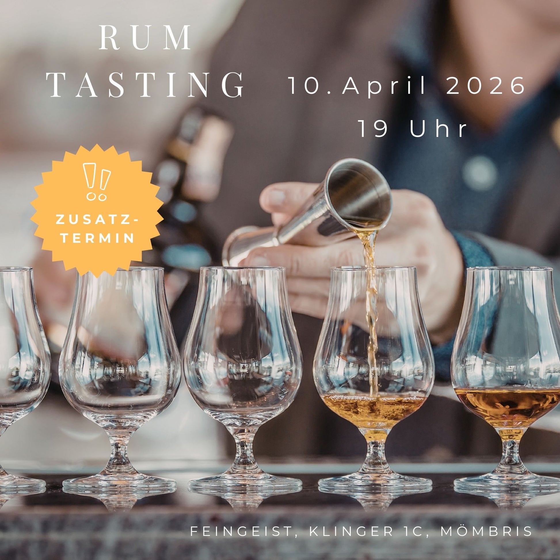 Unser Rum Tasting war in kürzester Zeit ausgebucht – deshalb freuen wir uns, Dir einen Zusatztermin am Freitag, 10.04.2026 anbieten zu können.