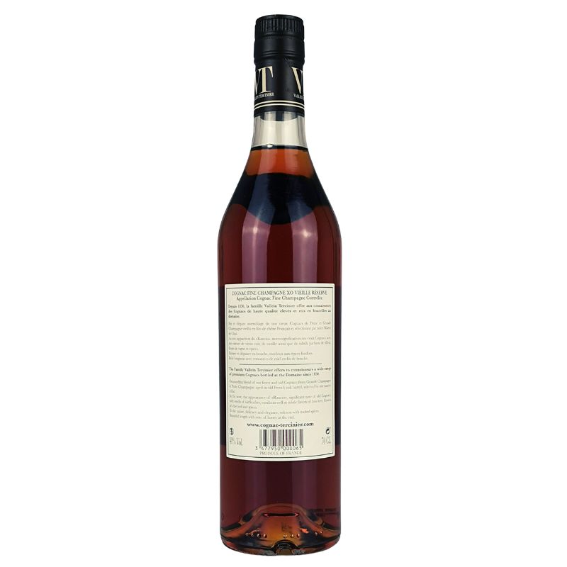 Dieser Cognac der Marke Vallein Tercinier stammt aus Frankreich und der Fine Champagne. Hergestellt wird der X.O. aus Trauben. Im Geschmack ist er nicht rauchig und mild und  wurde mit einem angenehmen Alkoholgehalt von 40% versehen. Seit 2018 wurde seine Reifezeit von 6 auf 10 Jahre erhöht. Auf Kältefiltration und Zuckerkulör wurde verzichtet. Am besten kommen die Aromen beim puren Genuss zur Geltung.