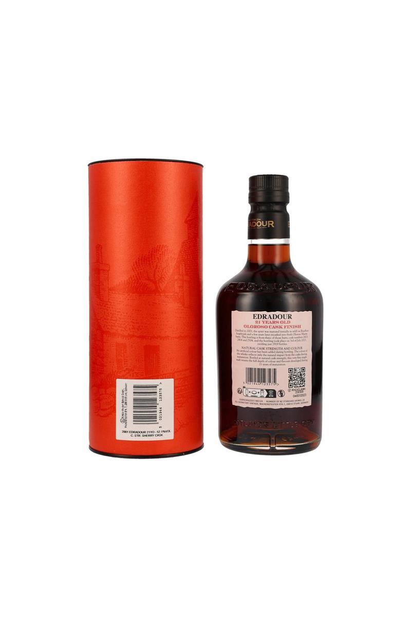 Der Edradour 2001/2023 ist ein 21 Jahre alter Single Malt, der mit einem exquisiten Sherry Finish veredelt wurde. Nach der Hauptreifung in Refill ex-Bourbon Hogsheads erhielt der Whisky sein Finish in frischen Oloroso Sherry Butts, was ihm eine unvergleichliche Tiefe und Komplexität verleiht. Mit einem Alkoholgehalt von 52,1% Vol. wird dieser Single Malt in Fassstärke abgefüllt, um sein volles Aroma zu bewahren.